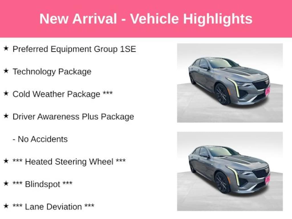 This CT4 Sport also features Cadillac's advanced Technology Package, including an Air Ionizer, 12-inch reconfigurable driver's display, and Head-Up Display. The Cold Weather Package and Driver Awareness Plus Package further enhance the driving experience with heated seats, a heated steering wheel, and advanced safety technologies.