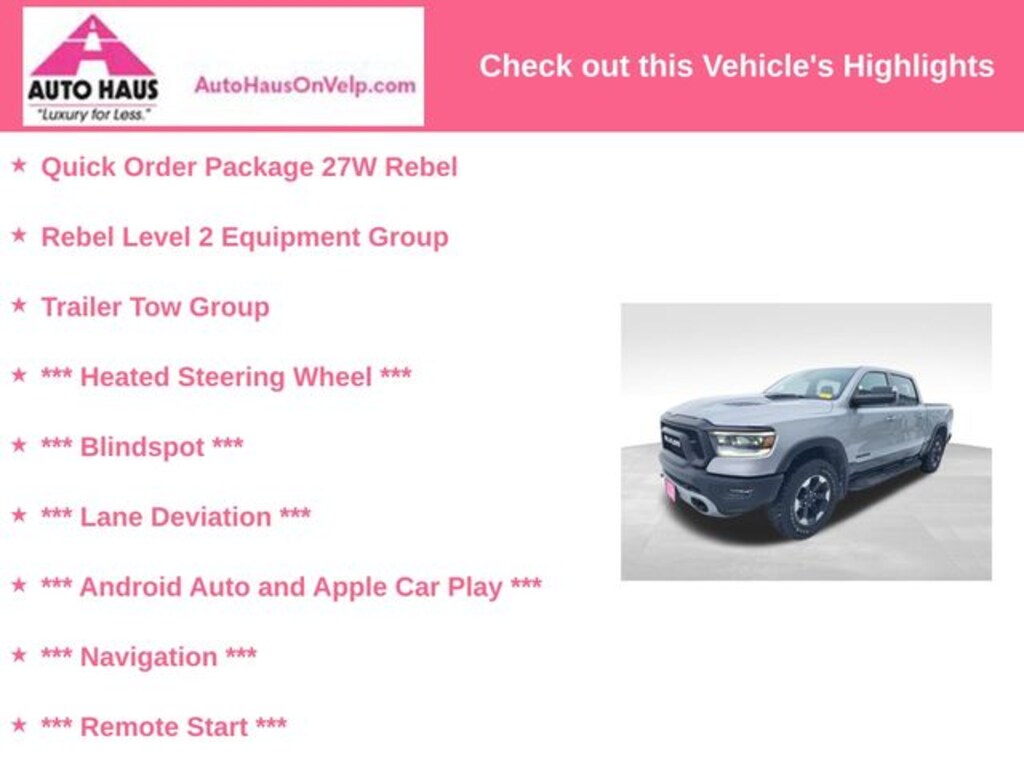 As a Dealer Rater-recognized #1 dealership in Wisconsin, we are committed to delivering an exceptional customer experience. Our knowledgeable sales team is ready to answer any questions you may have and guide you through the purchase process. We invite you to schedule a test drive and experience the power and refinement of this remarkable Ram 1500 Rebel for yourself.